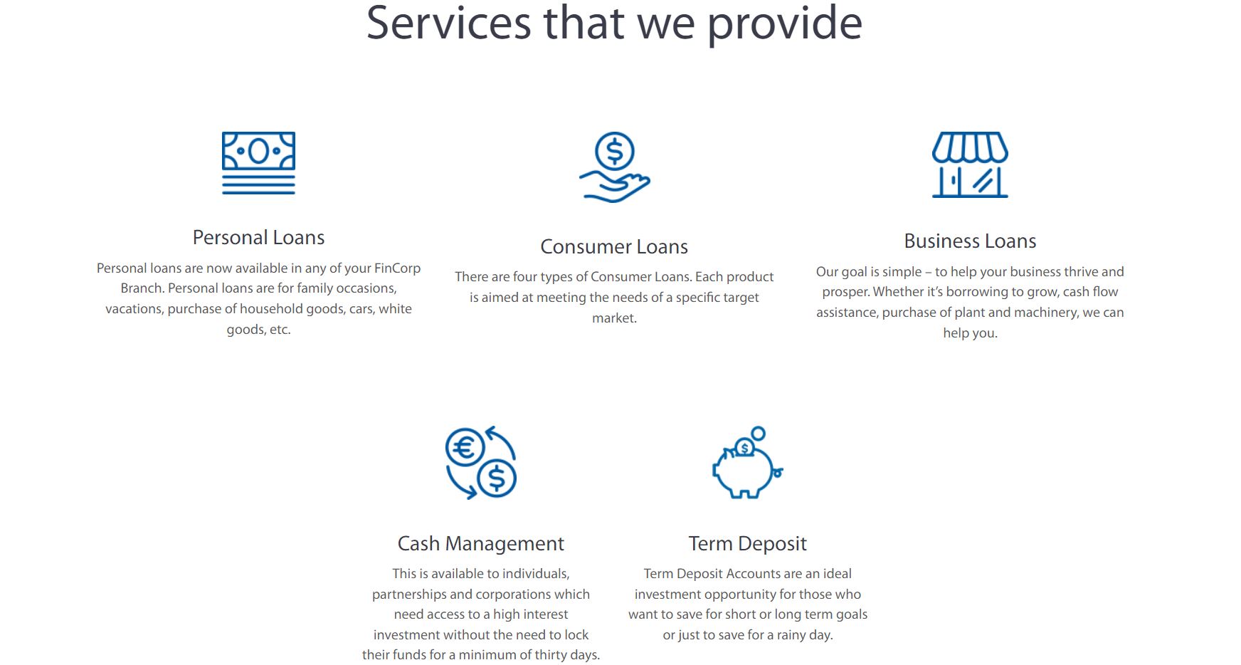 Finance Corporation Limited (FinCorp) is one of the largest consumer and commercial based finance company in Papua New Guinea. Licensed under the Bank of Papua New Guinea, FinCorp offers a range of financial products and investment services catering to all lifestyles and market segments.